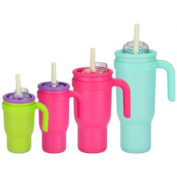 Vaso de taza de café de viaje de acero inoxidable a prueba de fugas de 20oz 30oz 40oz con asa y tapa de paja abatible